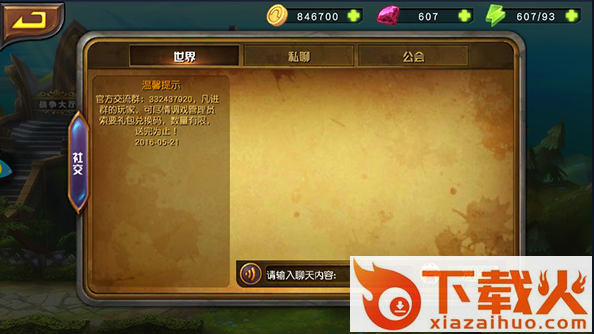 点击主城界面左下角的聊天按钮,即可打开聊天界面: