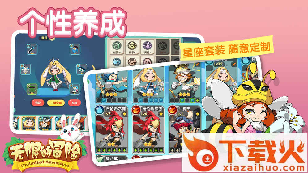 无限的冒险,一款精彩的冒险RPG手游。游戏画面清新,玩法多样,各种放置+卡牌+Roguelike元素轻松体验,更有全新的萌系英雄任你获取,简单收集,开启你的精彩冒险!...