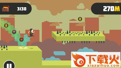 《奋勇向前》是传统的横版跑酷,Try Harder先生从屋子里出来后便是一路狂奔,玩家要点击屏幕让他越过种种障碍,比如钉板、高台、水坑等等。