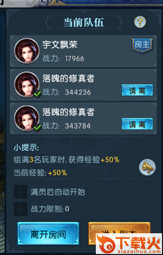 经验副本:最好组够三个人开,因为怪物无限刷,人多力量大。组队人数越多就刷的越快,三人组队还有额外经验加成