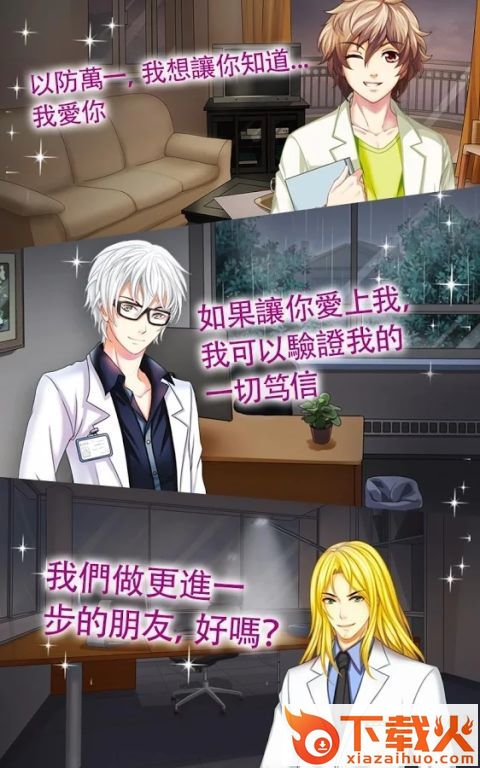 大部分的女生可能都会有这样的一个小说梦,既然现实无法满足,在游戏中体验一下也是不错的,各种不同类型的美男有没有让你心动呢?不过这款恋爱游戏相对于其他的恋爱游戏来说过于简单,虽然剧情还算比较丰富,但是画面就只有那么几个,而且都不是刻画得比较精致。