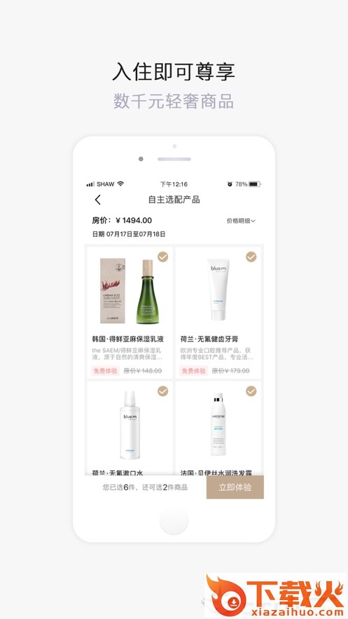 旅客可以根据自已的喜好,个性化选用并0元体验其中的各种产品。