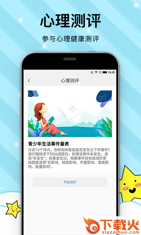 校园心理健康app,学生心理健康测评平台,在线参与测评,轻松掌握测评结果,了解个人心理健康状态,让孩子健康成长。软件还支持校园信息发布功能,享受便捷校园生活。...
