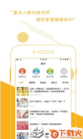 爱健康app是一款掌上医疗服务平台。为用户提供健康评估,健康资讯,预约挂号等功能,帮助养成健康向上的生活方式。