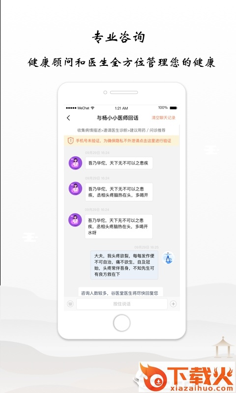 专业健康咨询:隐私保护,健康顾问和医生共同全方位管理用户的健康。