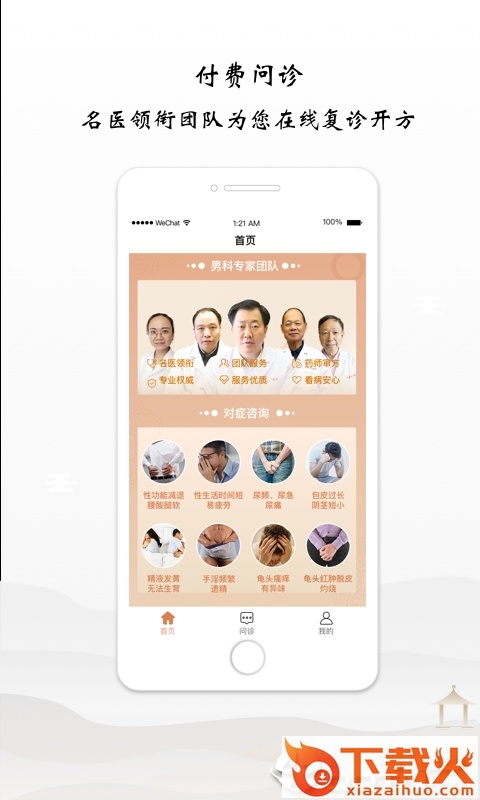在线问诊开方:名医领衔,与团队成员为用户进行问诊诊断和复诊开方。