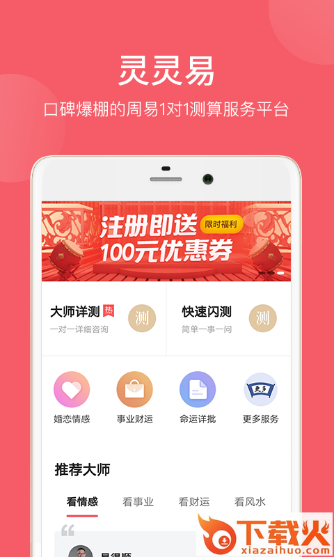 灵灵易app,专业可靠的周易测算平台,精选大师,在线测算,为你预测未来运势。来灵灵易app,还能享受一对一真人咨询服务,解决你的情感、事业、婚姻等多个方面问题。...