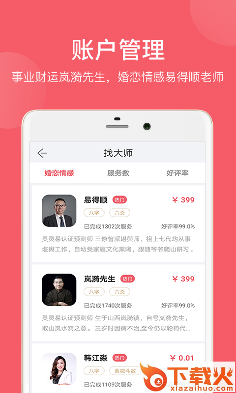 灵灵易app,专业可靠的周易测算平台,精选大师,在线测算,为你预测未来运势。来灵灵易app,还能享受一对一真人咨询服务,解决你的情感、事业、婚姻等多个方面问题。