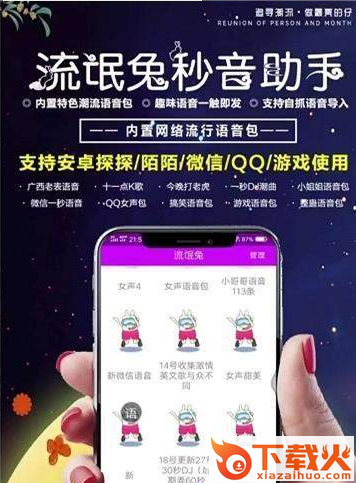 流氓兔秒音助手又名流氓兔语音包,APP全网独家首发一秒语音包资源,各种广西老表语音包、吃鸡语音包、一秒语音包、陌陌微信QQ语音包全部免费使用,时下最潮流语音包就选流氓兔哦!