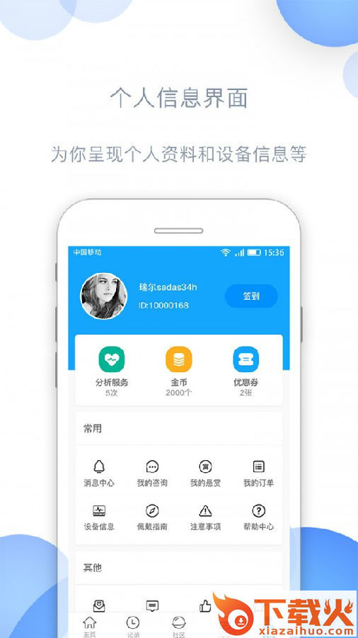 为你呈现个人资料和设备信息等;