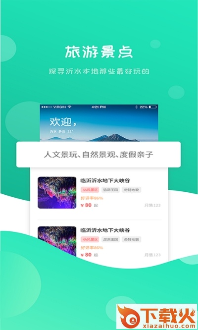 沂水app,收集了大量的旅游策略,用户可以通过该平台了解当地的风景和美食信息。你可以选择最适合的旅行方式,找到最适合的旅行策略,而用户在旅游过程中还可以打开导游解说,自动定位为您介绍沿途的风景!...