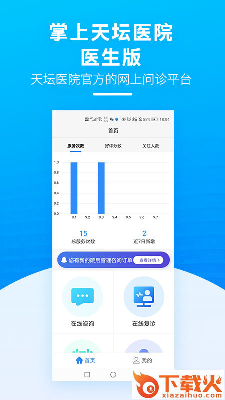 掌上天坛医院医生版,是由首都医科大学附属北京天坛医院开发打造的,给医生们更加可靠安全的在线医疗服务,能够帮助医生记录病人情况,提供在线咨询、管理病患等一系列功能。