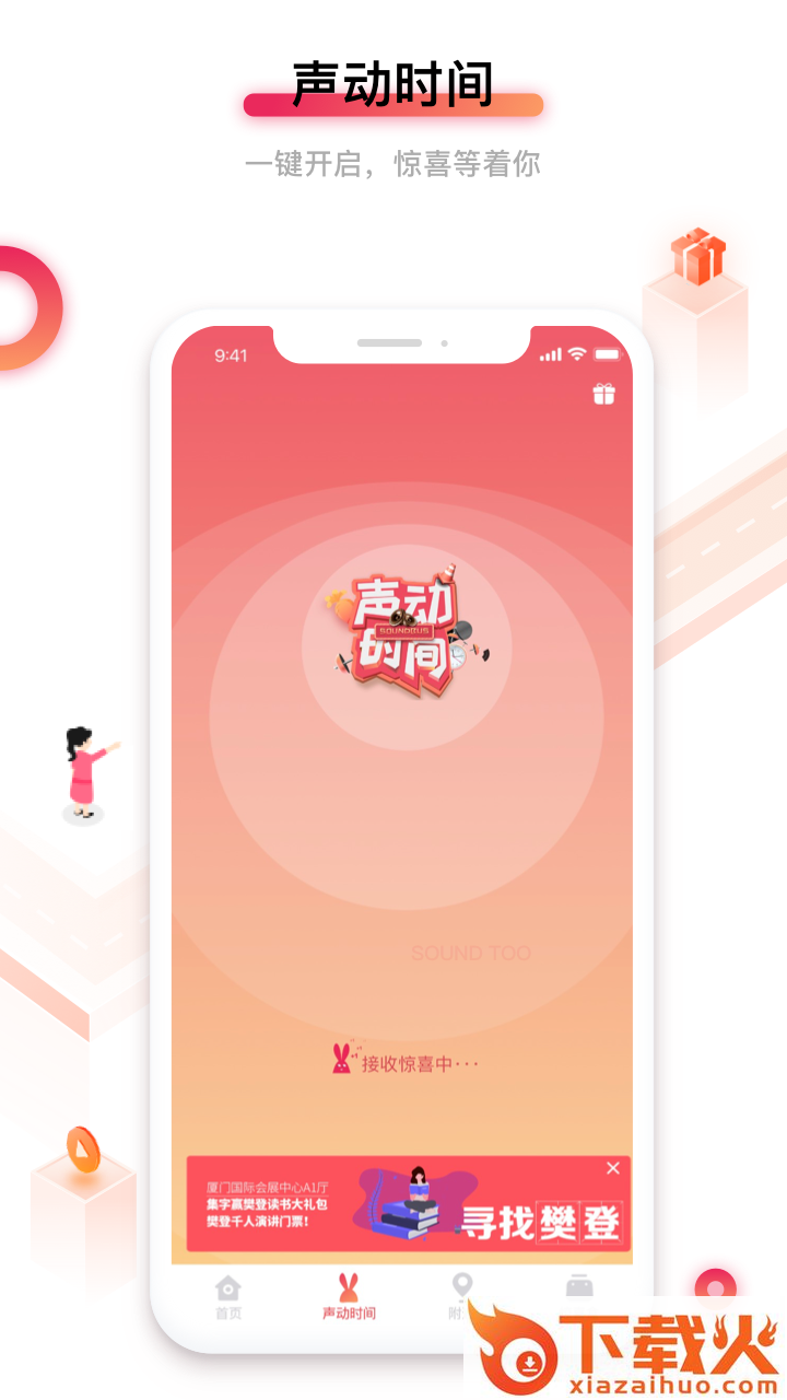 无论你身处何时何地,唤醒睡懒觉的声动兔,它将一路狂奔,为你带回身边所隐藏的店家福利、旅游地图、……等等惊喜!