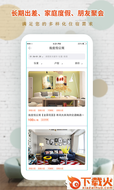 我度假公寓app是一款专注于酒店公寓以及名宿在线预订的平台。这里拥有海量的名宿还有公寓预订资源,让你可以随时随地的选择你喜欢的。不仅房源多,而且价格非常的优惠,超多秒杀名额等你来抢,想要试试看的朋友快来下载吧!