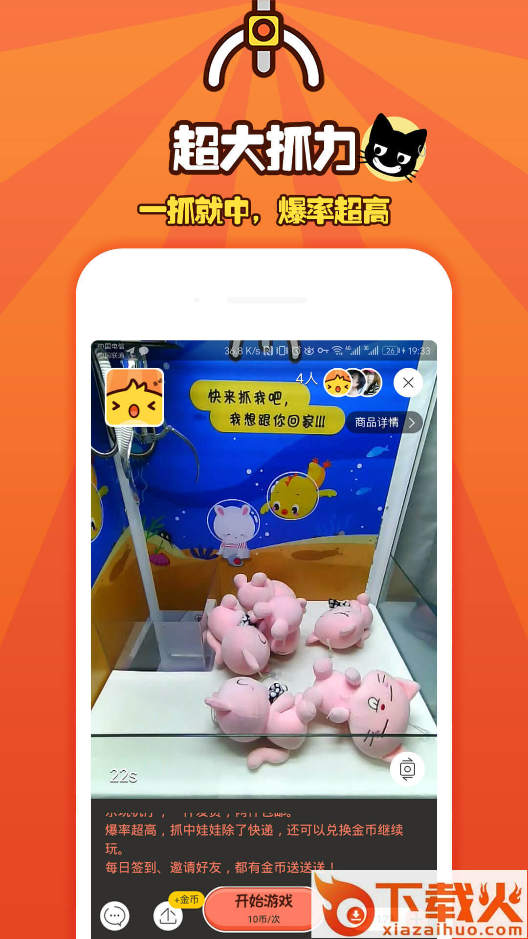高清实景直播抓取: 视频直播见证抓取过程,线上操控真机秀操作!所见即所得,在家躺着就能抓娃娃,想抓就抓公仔类别上新不断: 火爆萌物、独家限量蒙奇奇、红包,抓到手软,玩到即是赚到