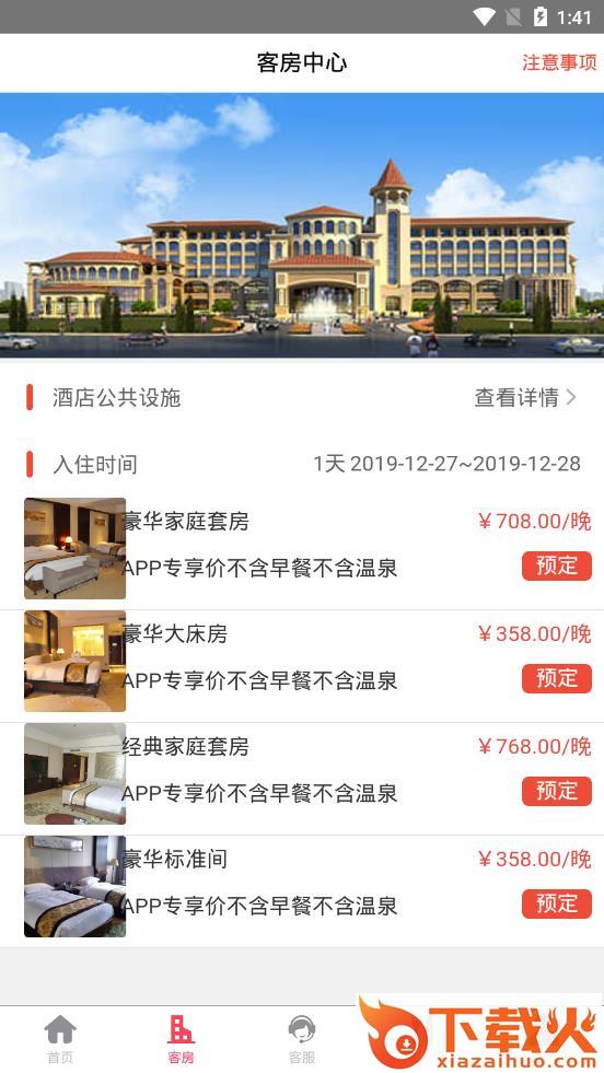客房预订、餐饮预定、会议室预定、洗衣服务、温泉票券、自助餐票券、用户投诉建议功能。