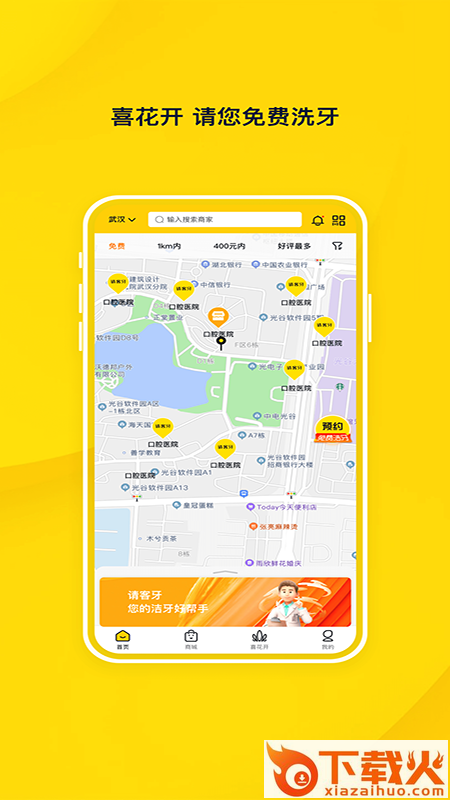 喜花开app是一款非常实用的预约洗牙看牙软件。软件为用户提供了实用的预约洗牙看牙服务,用户可以随时在线进行预约,保护牙齿健康,软件内还有专业的口腔医疗机构,让用户看牙更方便。