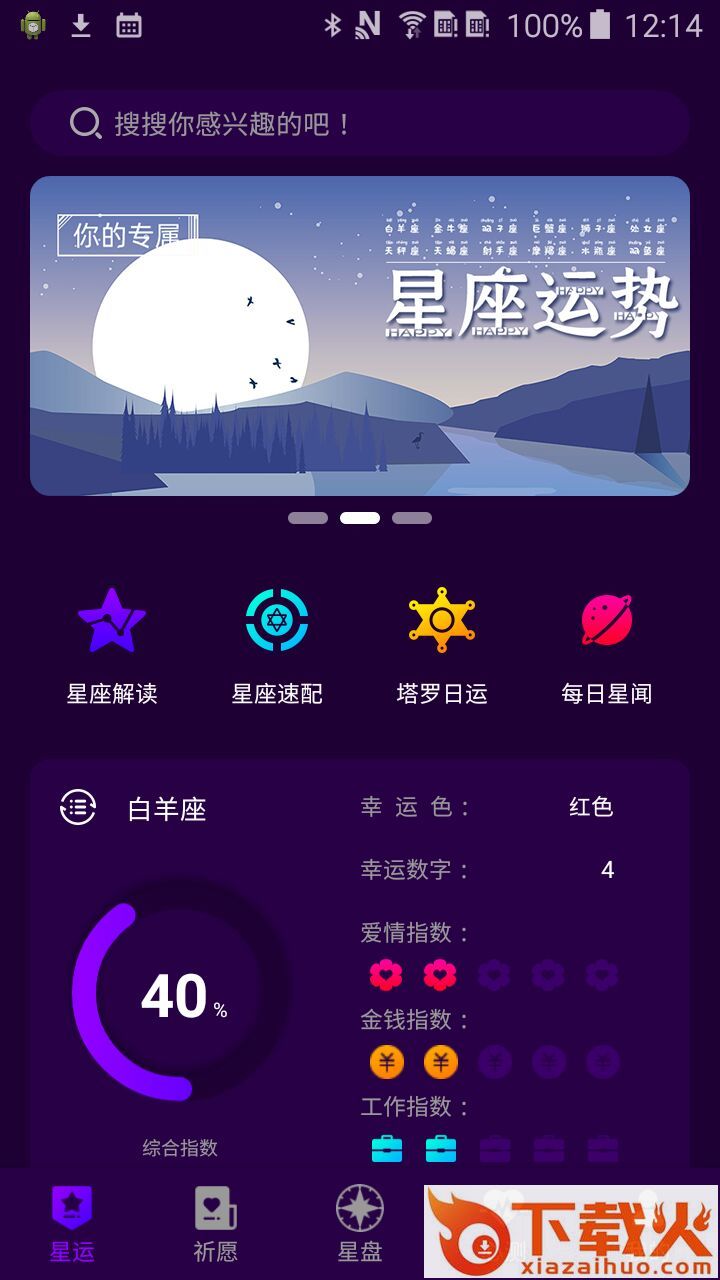 星运app,分析自己的命运,随时检查星座特征,找到与你匹配的星座用户。而在这里你可以查看你的星盘,也可以通过个性等匹配方法进行匹配,还可以查看最新的星座排名,让你在家里不无聊!...