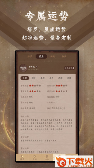 4.专业星座运势,包括今日,明日,本周,本月,年度,爱情运势。