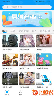 手机变声器丰富的语音包有:吃鸡语音包、语音包、李云龙语音包、小哥哥语音、小姐姐语音等