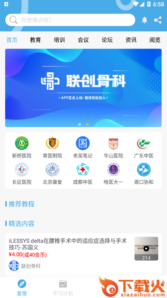 联创骨科App,是上海懋煜医疗器械有限公司打造的骨科医生学习平台,在线学习课程多多,文献检索超方便,视频课程更清晰,还可以与同行们一起交流探讨。