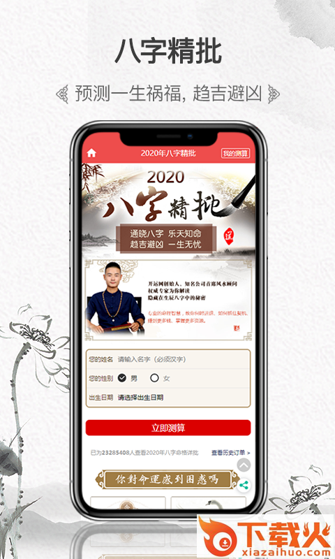 因山八字测算App,造命由天,改运由人,知名知运,把握未来;八字精批,预测一生祸福,趋吉避凶;紫微斗数,揭秘命运玄机,指引人生方向;宝宝起名,国学周易取名,开启一生好运;月老姻缘,八字排盘揭开烟缘奥秘。