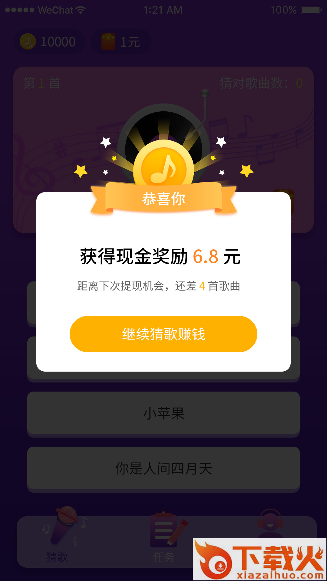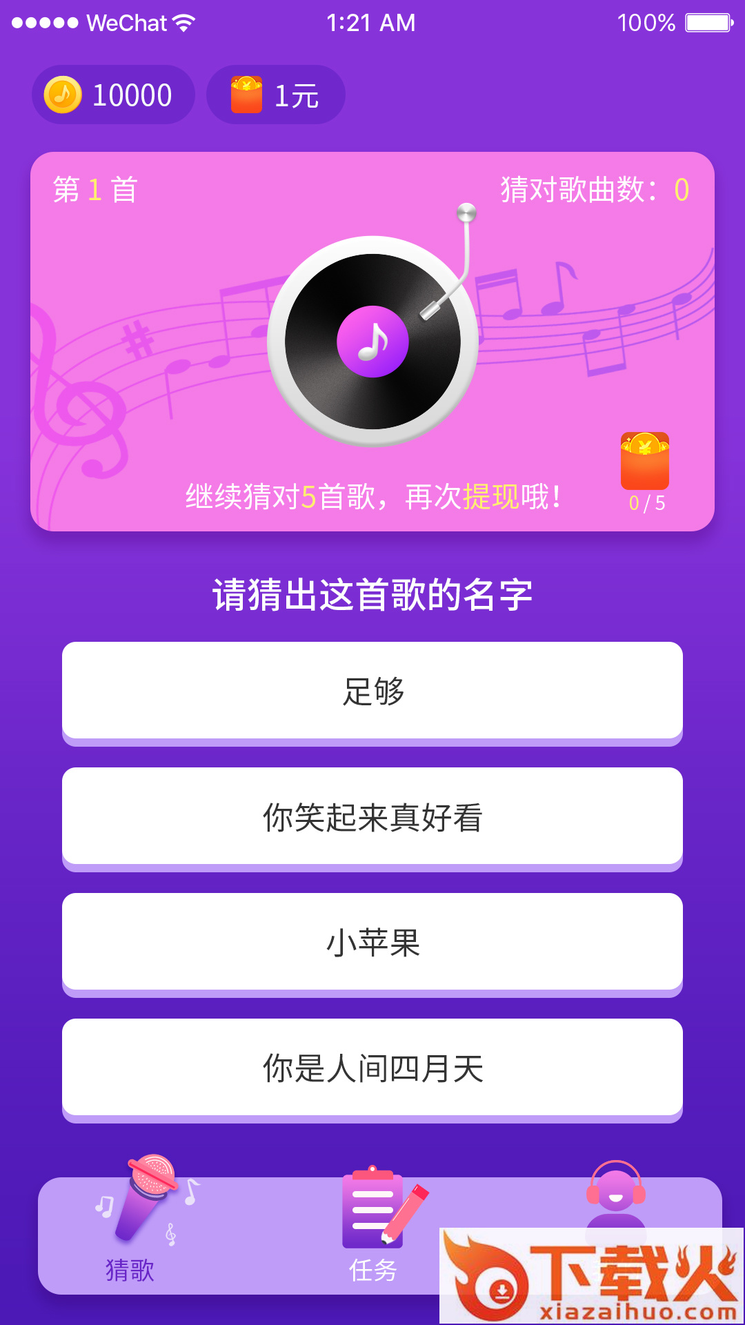 猜歌赚钱,猜对就能领红包,1元即可提现!