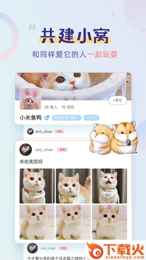 你能跟家里的小可爱们互动,喂食喂水撸撸抱抱,一个都不会少。注意呦,一个小可爱可以同时被多人云养,而它一天的总互动次数是有限的,你要是来晚了可能连铲屎都赶不上咯。