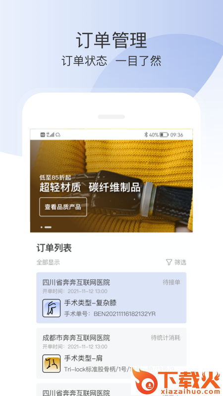 “奔奔跟台”是一款简洁、高效的骨科医疗手术服务协同系统,含手机app端和PC端,实现对临床手术服务的全流程管控跟踪。