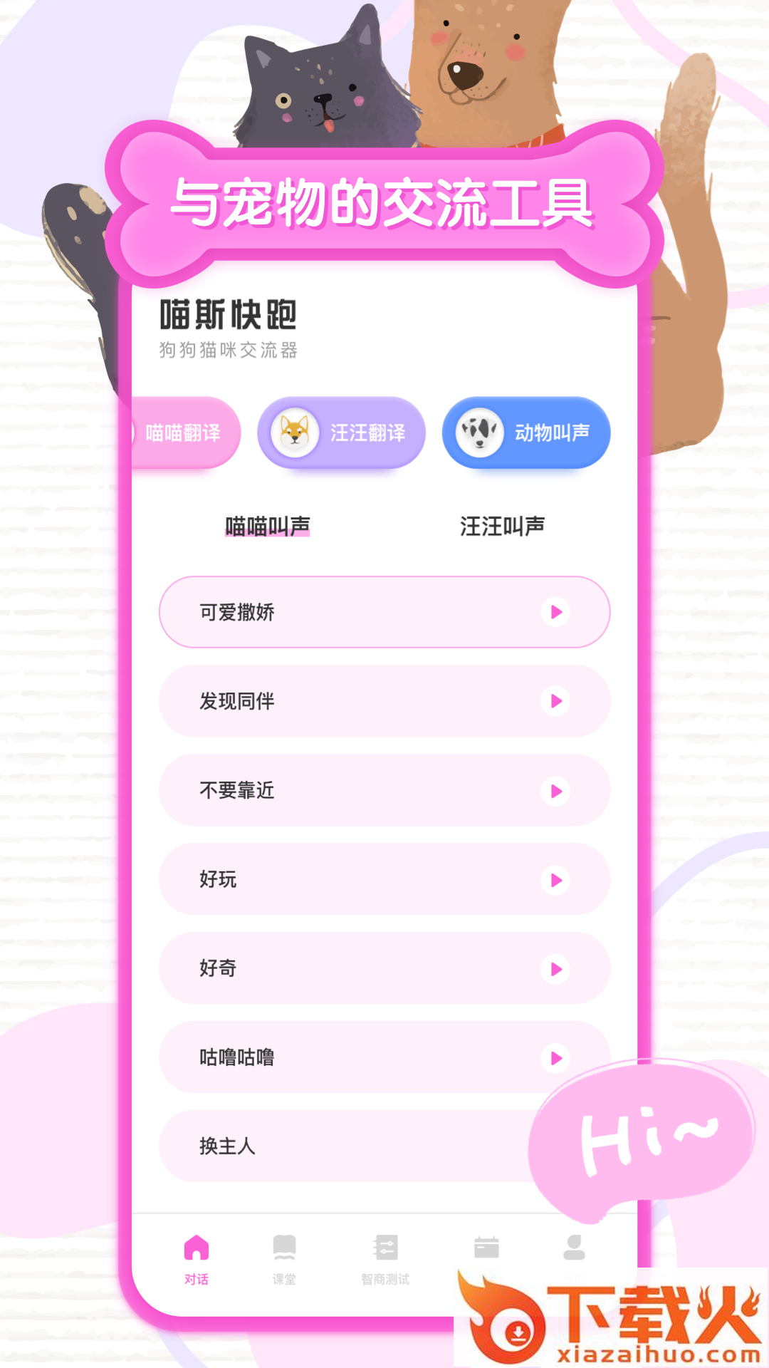 1、您还在担心喵星人和汪星人不愿意亲近您? 即时将你的声音变换为猫语和狗语,获得猫咪和狗狗的注意力。