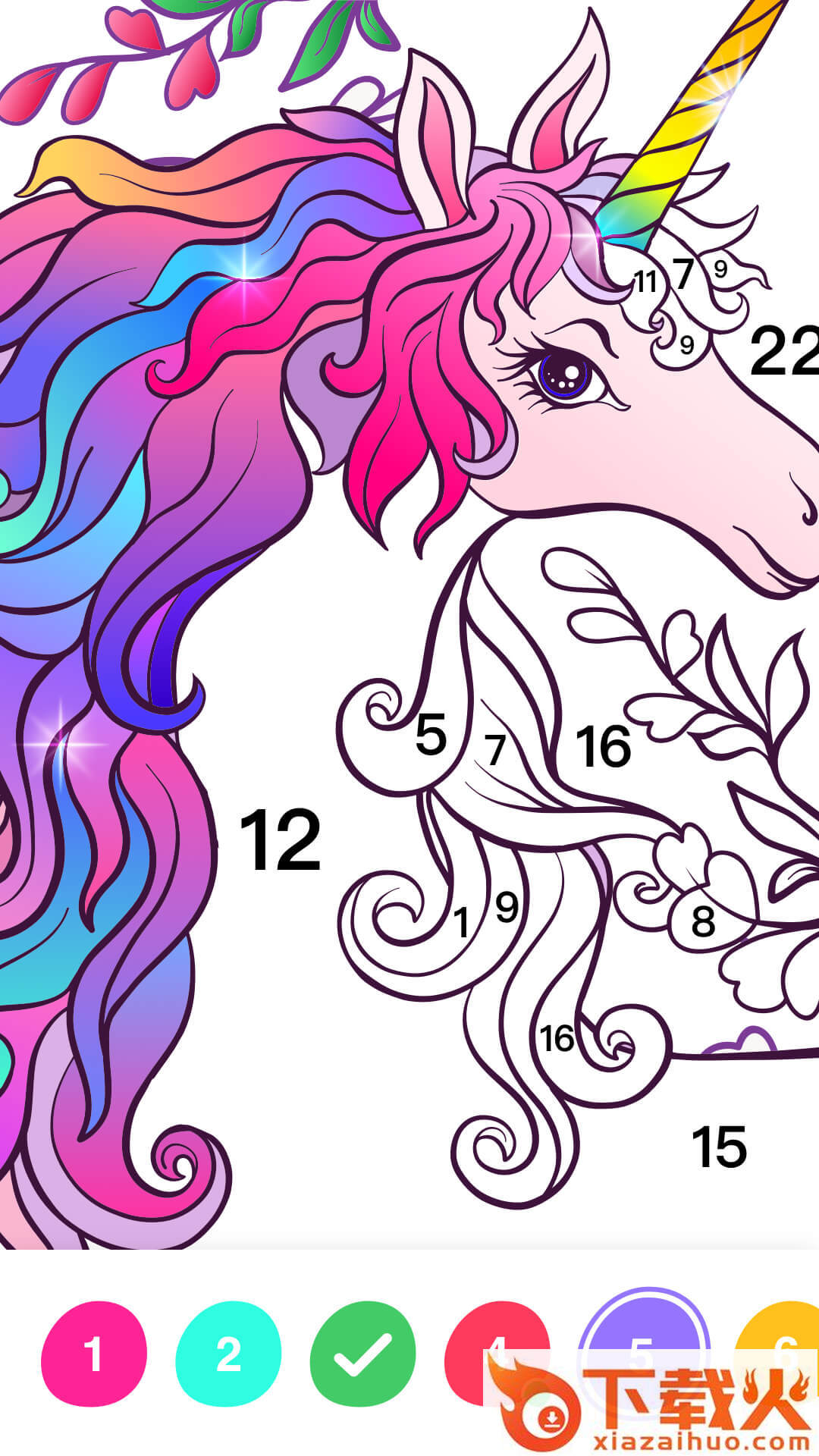 超简单的玩法,填色页中的不同部分会标记有不同的数字,每个数字代表一个颜色。选择颜色后填入对应数字的区域即可!超简单就能完成一幅迷人的艺术品!