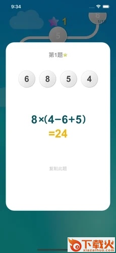 开心24会随机给出4个数字,用户通过加减乘除形成公式让其结果等于24;