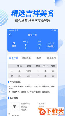 一款集起名、解名、改名、名字打分、姓名测试等功能于一体的宝宝起名软件。