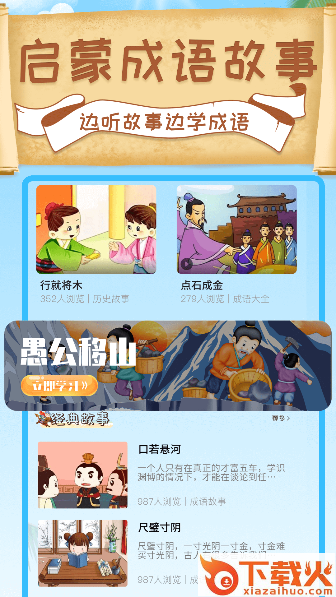 以视频教学为主、还有经典的图文成语故事学习,