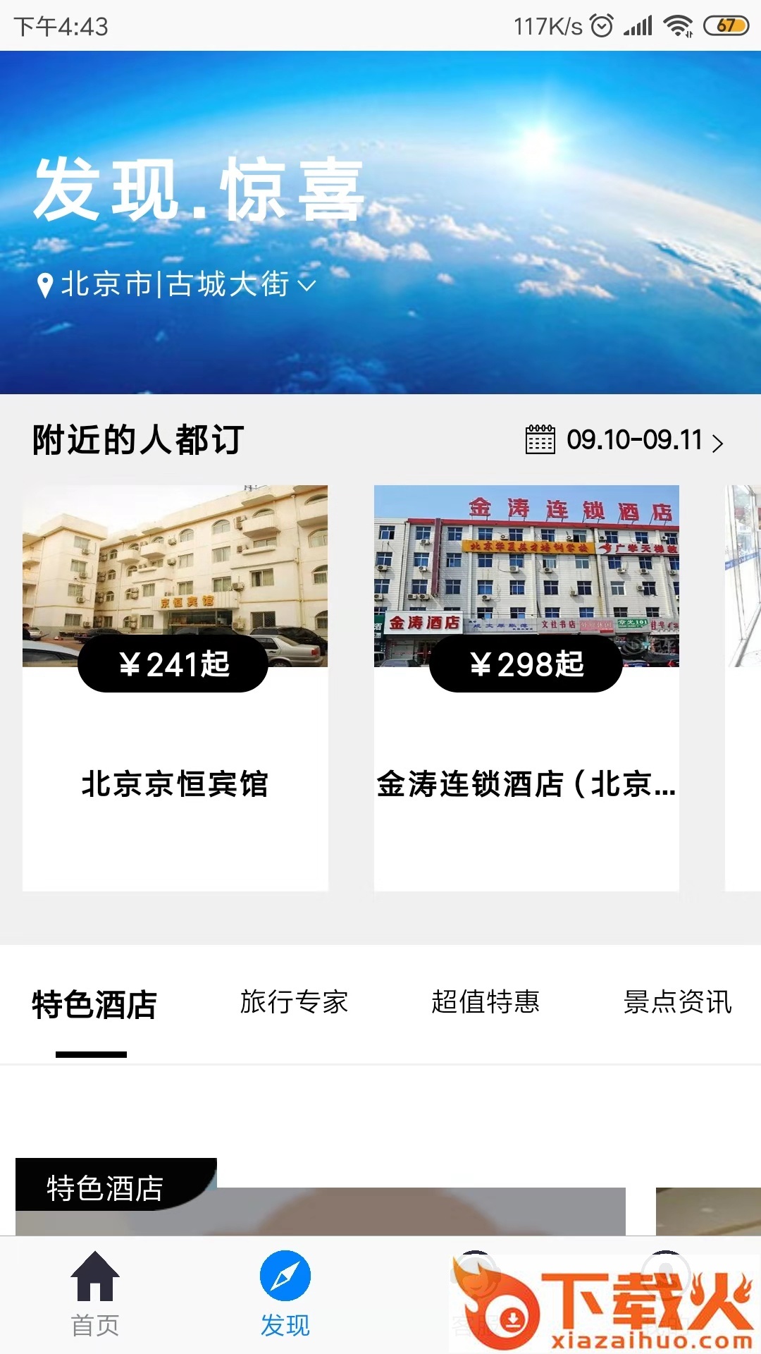 2.发现:为您提供附近酒店以及最新的景点资讯;
