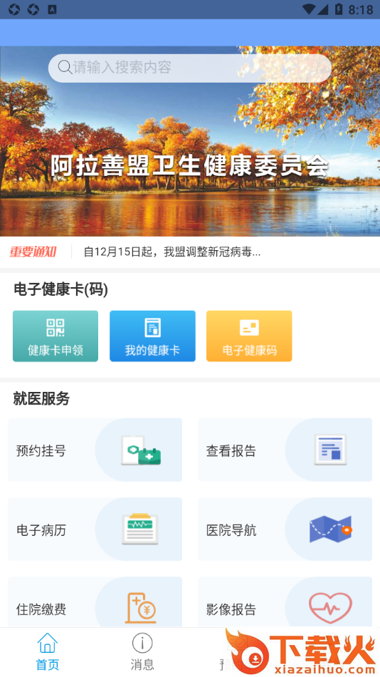 健康阿拉善app是一款移动健康服务平台,平台拥有预约挂号,电子健康卡,电子支付,报告查询等等丰富功能,可以助力用户更轻松便捷健康生活。