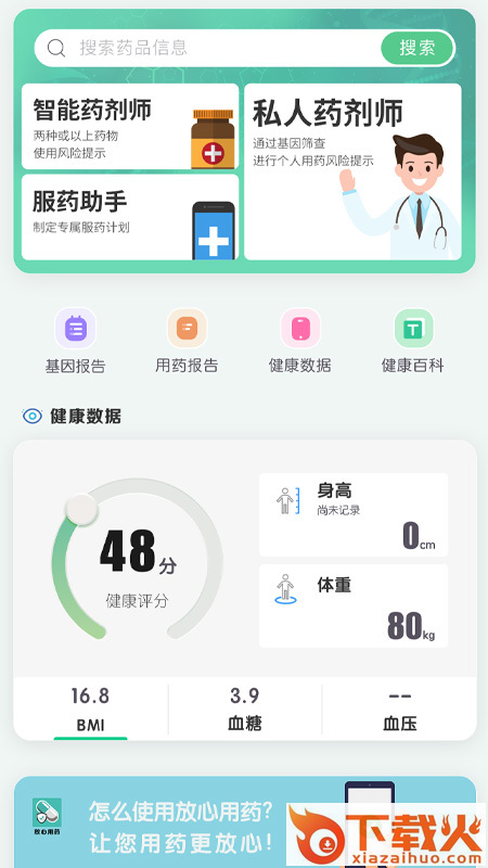 放心用药app,安全用药指导软件,提供大量药品资料,快速录入药品信息,查看用药指导,轻松掌握药品注意事项,安全用药,让用药更放心、更安心。