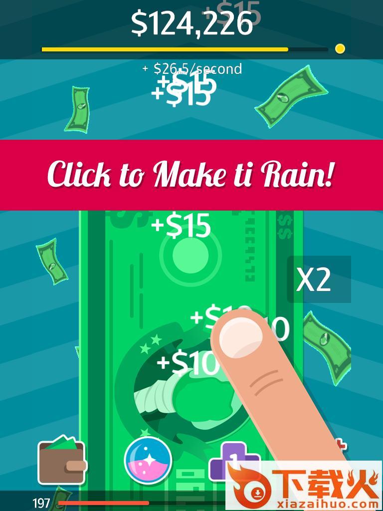 让钞票飞2是一款非常有趣的模拟赚钱游戏,在这款游戏中,你的目的就是赚取更多的钱,获得钱的方式就是通过点击手机。当你的钱足够多了,就能升级点击屏幕一次所赚取的钱。超多美钞等你来赚!觉得这款游戏还不错的小伙伴快来下载吧!
