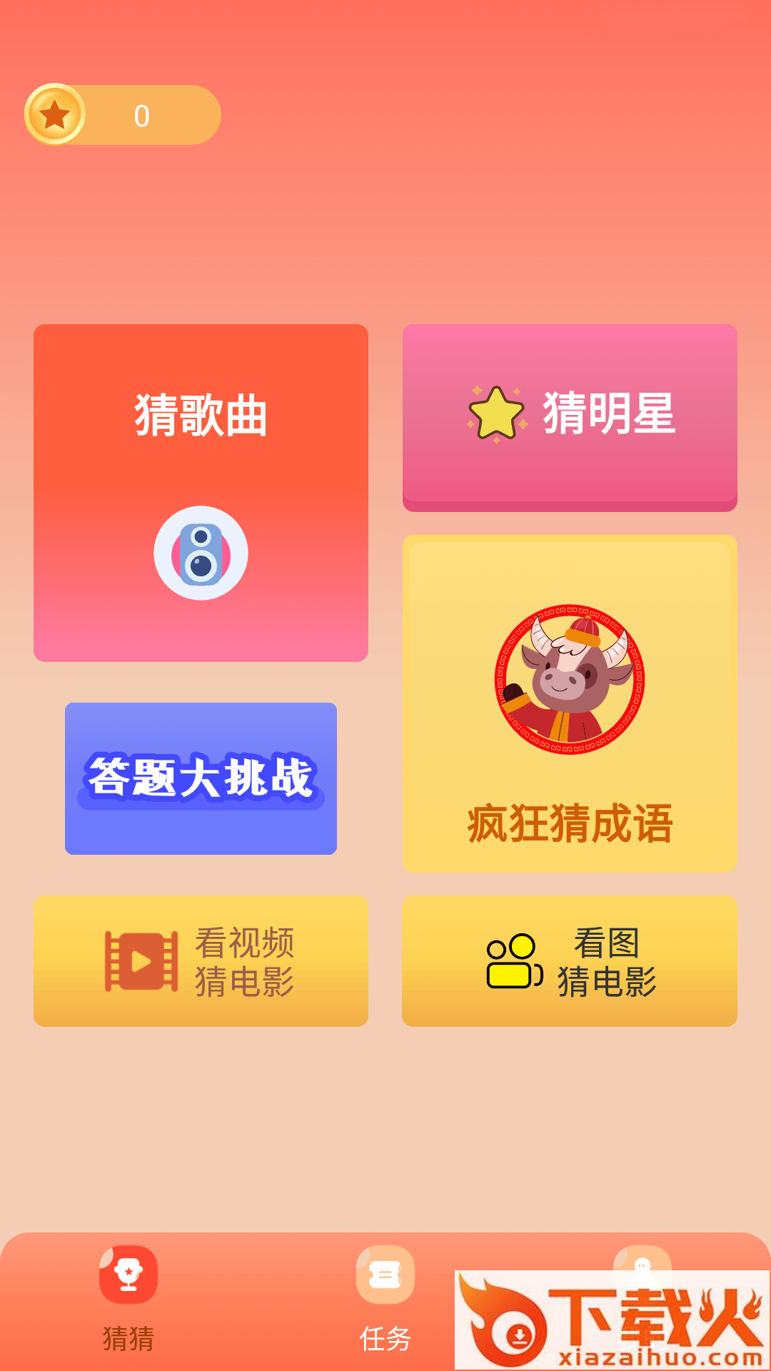 答题冠军app,提供了猜歌曲、猜明星、答题大挑战、疯狂猜成语、看视频猜电影、看图猜电影等答题模式,让你轻松答题快乐获得许许多多的小知识哦!