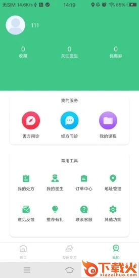 诊室之家app,支持诊所注册和医生注册,让每个医生都拥有一个线上问诊的渠道。诊室之家app。我的服务,舌方问诊、经放问诊、我的课程;常用工具,我的处方、我的医生、订单中心等。