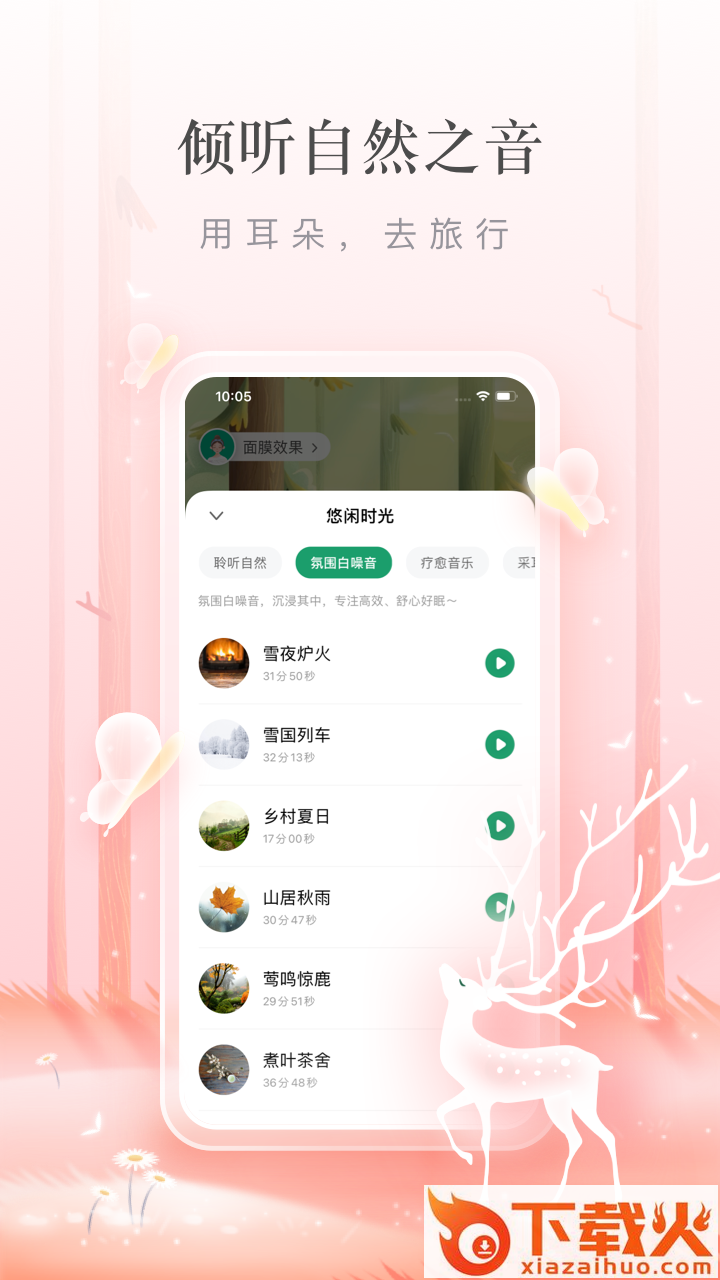 片时app下载,汇聚更多自然场景与音频,为小伙伴们提供更加宁静平和的场景,来片时app一键身临其境体验自然魅力,治愈身心疲惫,有需要就来下载。...