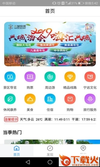 云游兴城app,兴城旅游综合服务平台,汇聚本地最新、最全旅游资讯、信息,享受更便捷的旅游服务,让旅游更尽兴、更省心。来云游兴城app,享受更多旅游福利。...