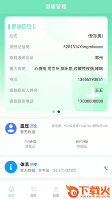 天和健康一款健康监测管理app,主要应用与用户健康数据的采集和上传,通过智能穿戴app进行数据展示,帮助用户直观监测相关身体数据,同时帮助用户的紧急联系人及时获取健康状况。