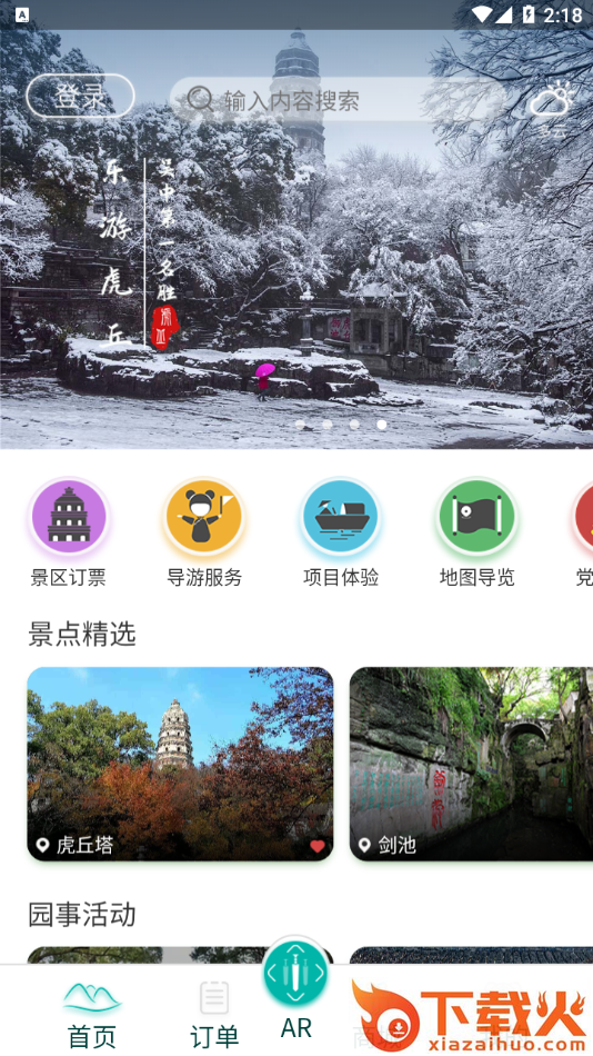 乐游虎丘app是苏州虎丘山风景名胜区官方推出,软件拥有景区订票,导游服务,项目体验,地图导览,ar,商场等等功能服务,可以帮助用户更好的玩转虎丘。