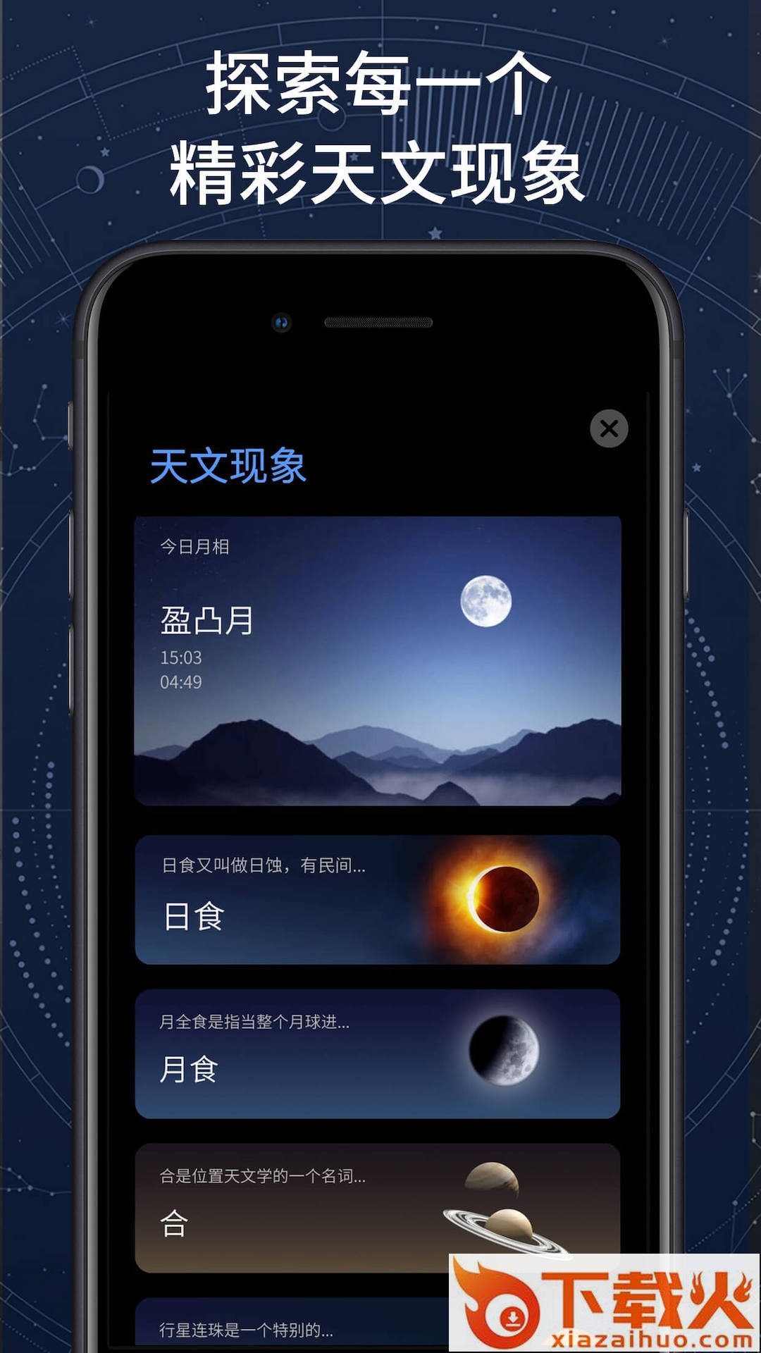 支持查看月相,了解不同时间,月亮的的变化特征;