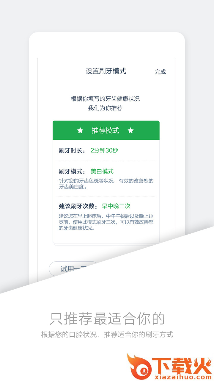 2.根据口腔情况给出合理的刷牙方案,多种刷牙模式可供选择,同时用户可自定义刷牙模式;