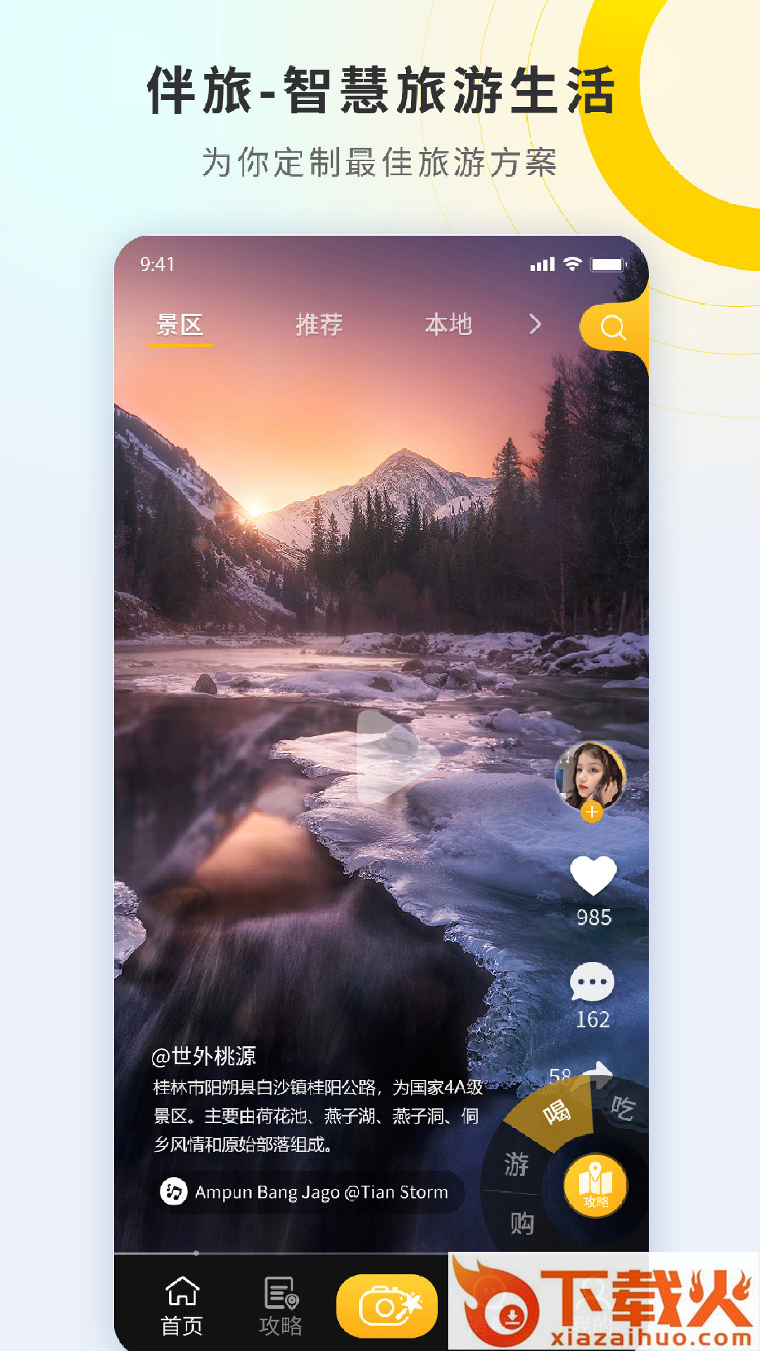 伴旅是一款集科技、旅游、短视频于―体的“一站式“垂直领域旅游工具�r将短视频传播与智能大数据相结合,提供不同内容的短视频、本地攻略、导游/摄影、社交分享等旅游全生态配套服务,给用户形成良好的出行体验。