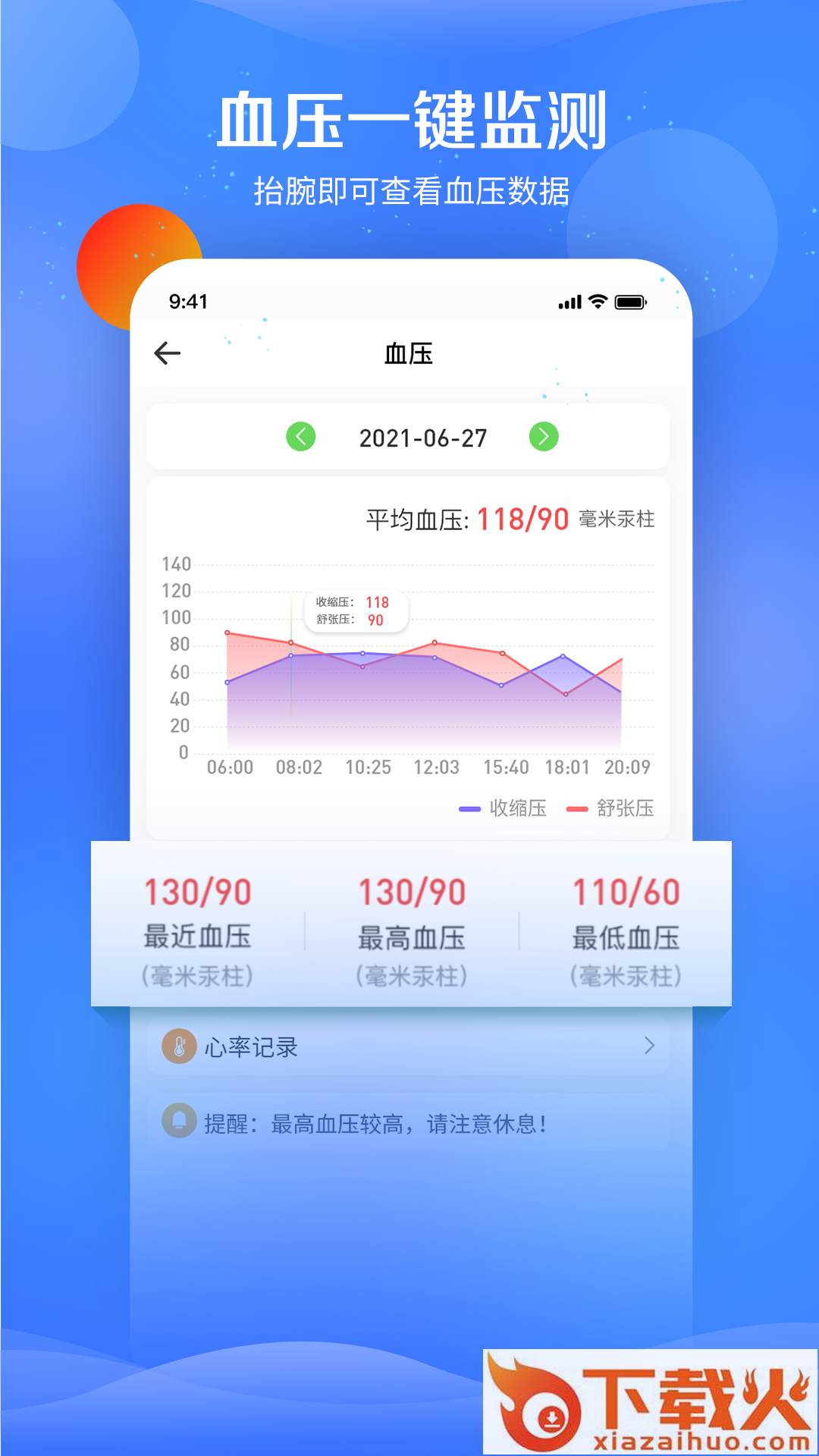 -精确计量出您每日的心率和血压状况,针对您的心率血压变化提出不同建议。