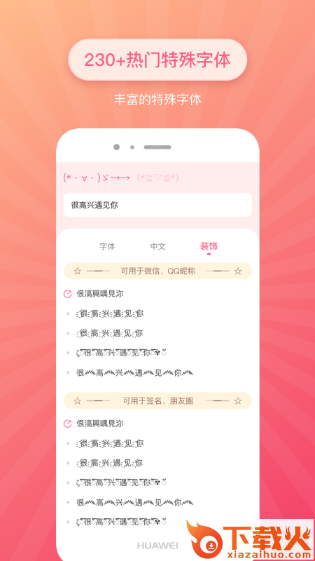 特殊文字是一款集成了各式字体、颜文字符号的应用,