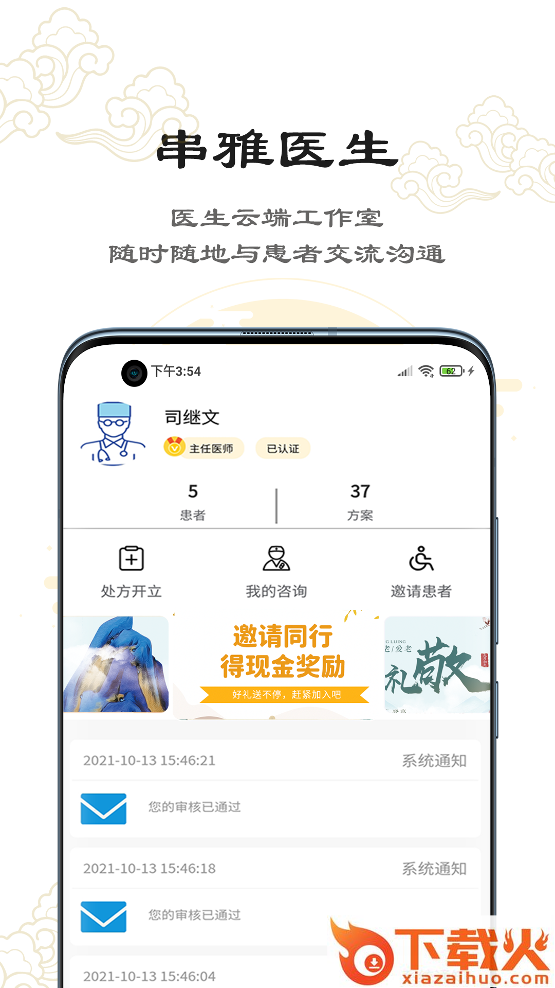 串雅医生App,医生云端工作室,随时随地与患者交流沟通;图文咨询,线上一对一问诊,图文、电话沟通,精准辩症;线上开方,问诊单了解病情,可满足各种类型患者需求。